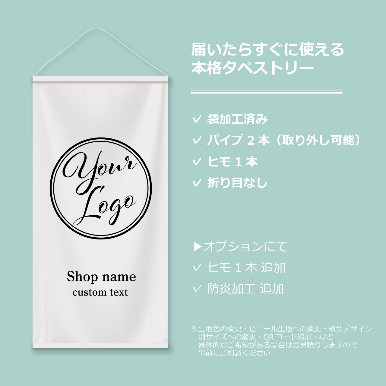 ロゴ入り本格タペストリー / logo ★ 名入れ【アイコン ショップ名入り イベント 布看板 バナー オーダーメイド 防炎加工】