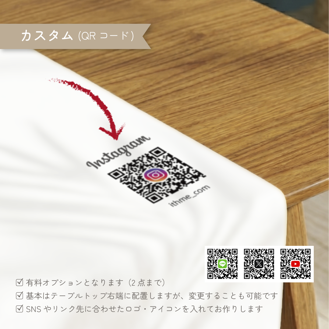 ▶インスタグラム等のQRコードを印字して、SNS等をPRすることもできます(有料オプション・ご希望の配置/大きさに変更することも可能です)